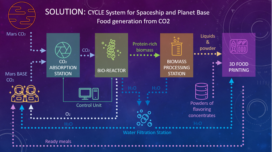 MARSONATION just solves this problem. First of all, on vital resources. Our scientific partners and I are going to create a system for generating oxygen and carbon dioxide food!